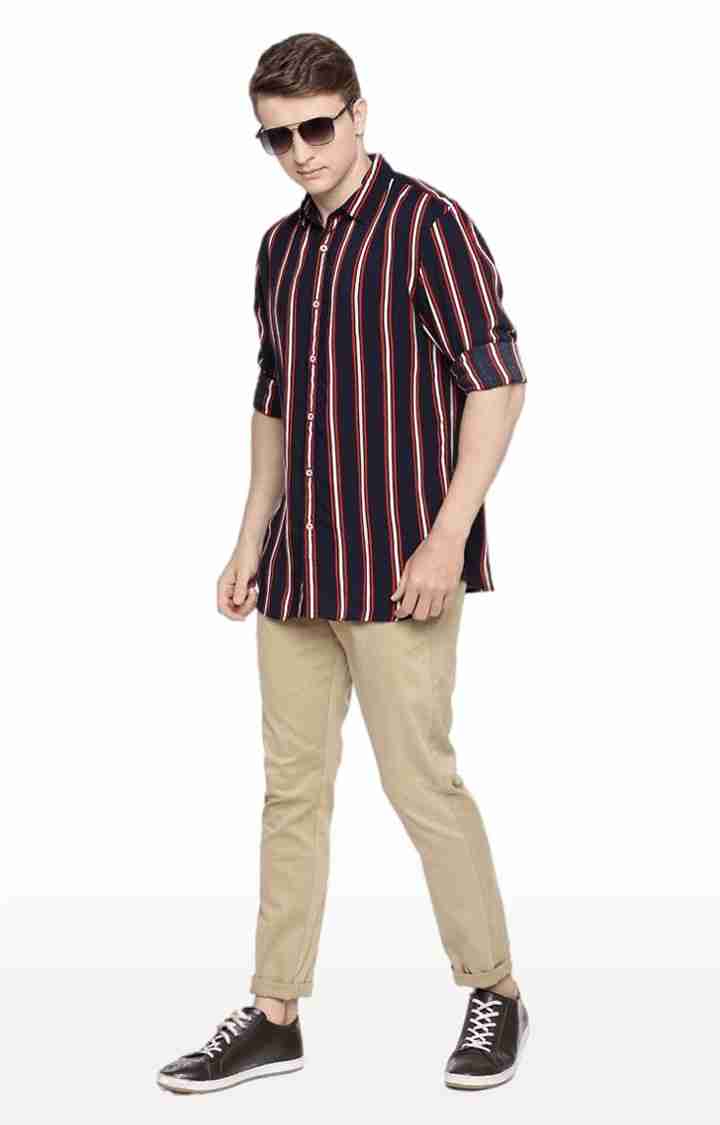 Celio* Men Beige Striped Straight Fit Cotton Casual Trouser