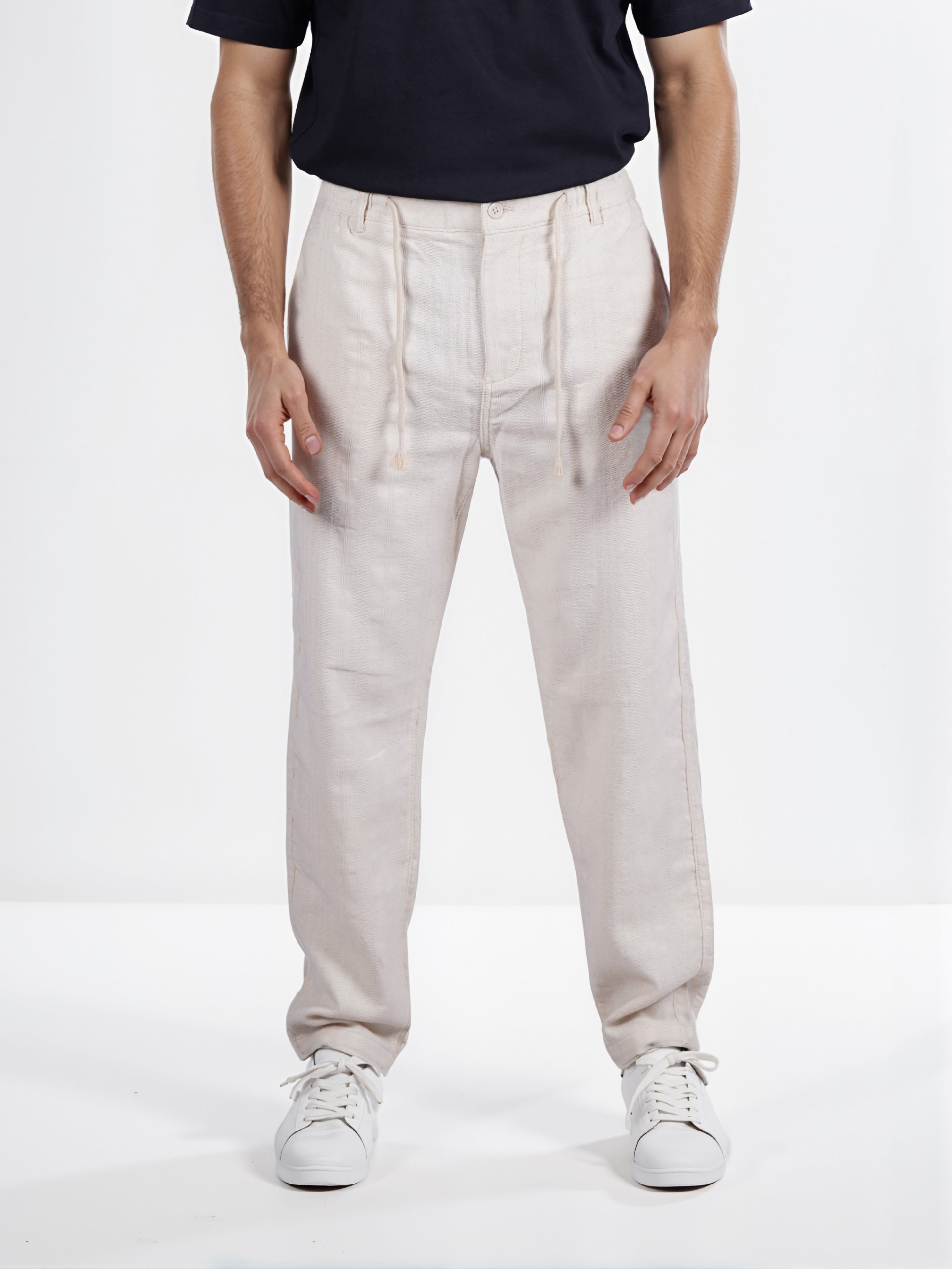 Celio* Men Beige Solid Straight Fit Linen Trouser