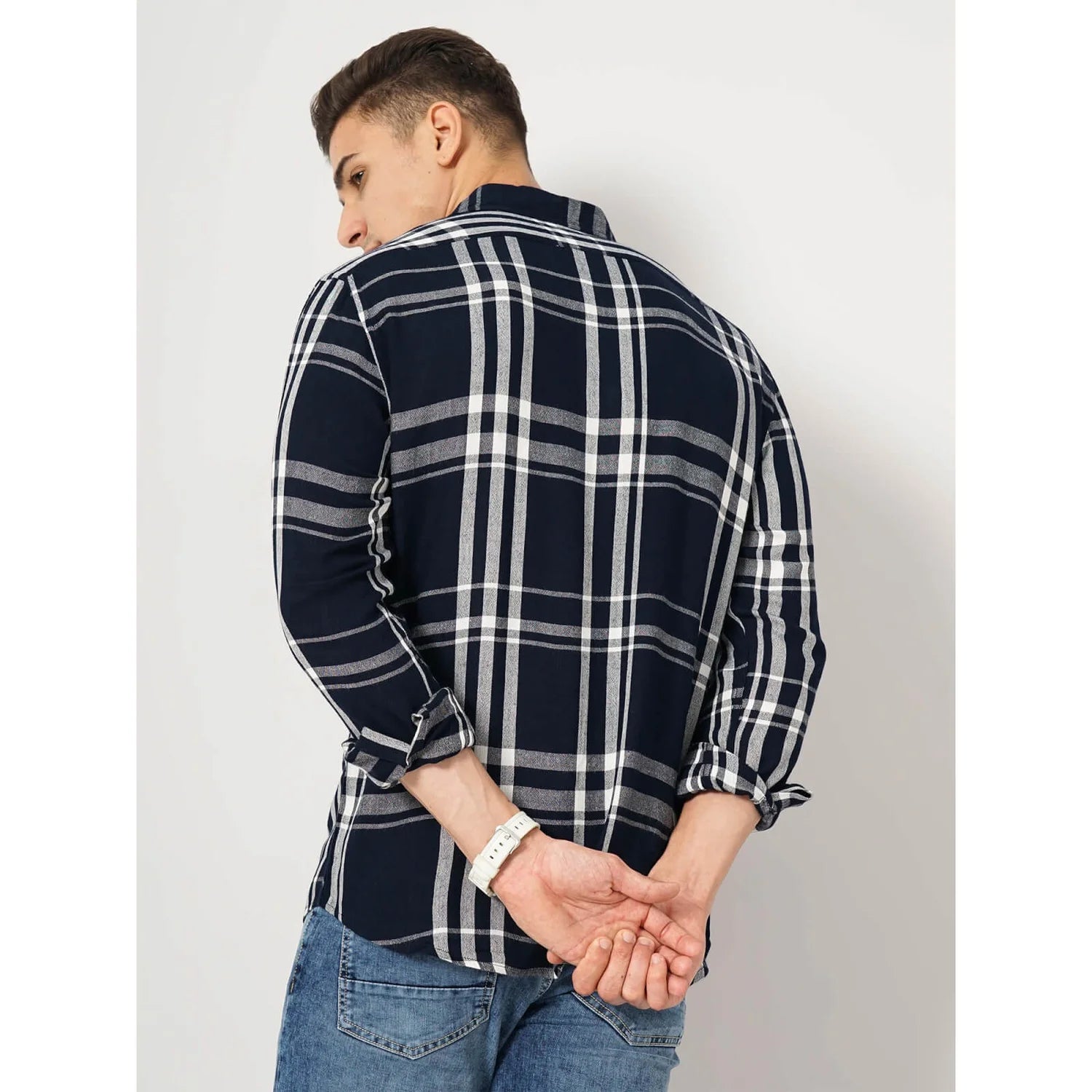 Celio* Solid Oversized Cotton Navy Blue Shirt