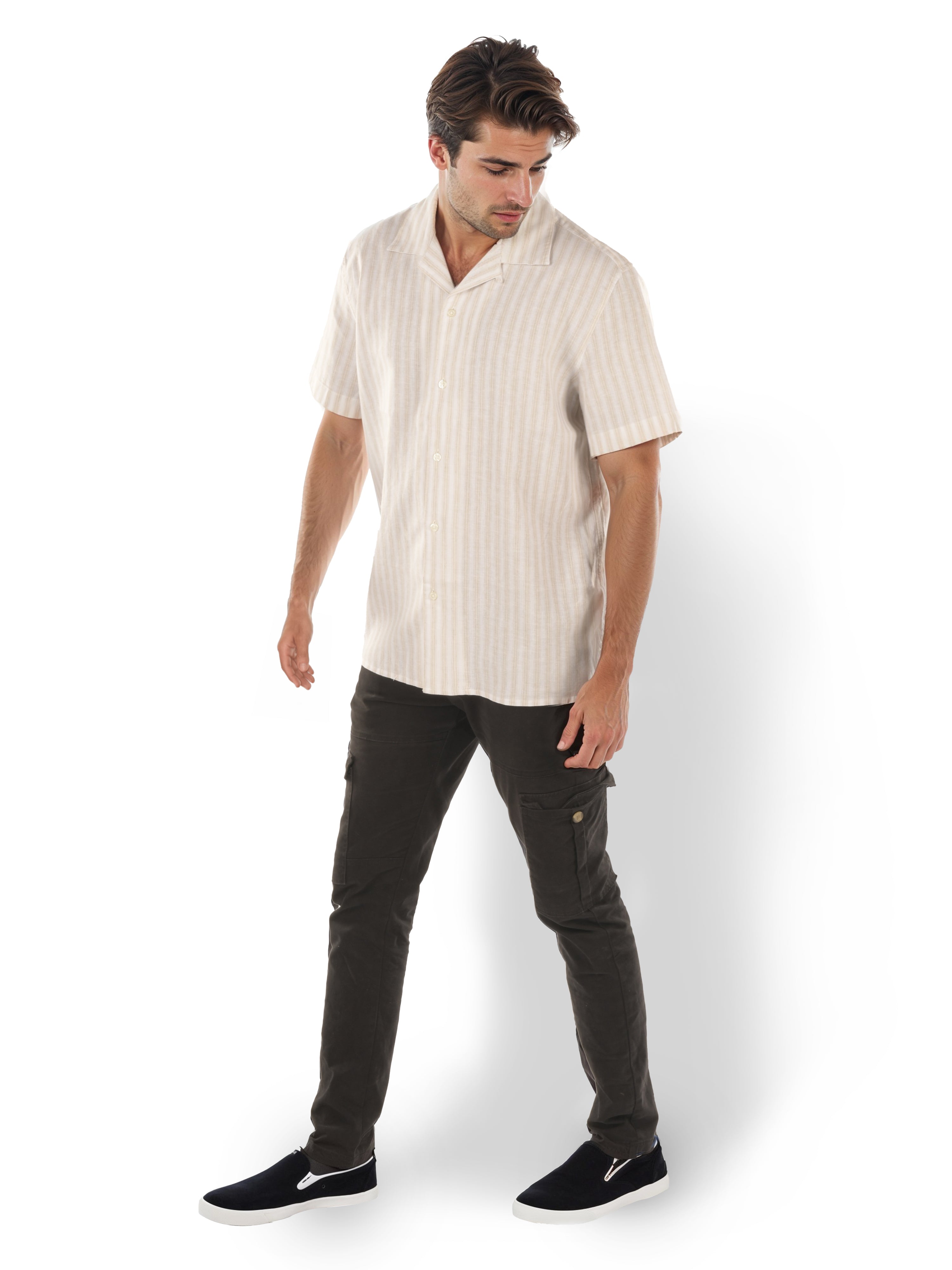 Celio* Striped Regular Fit Viscose Beige Shirt
