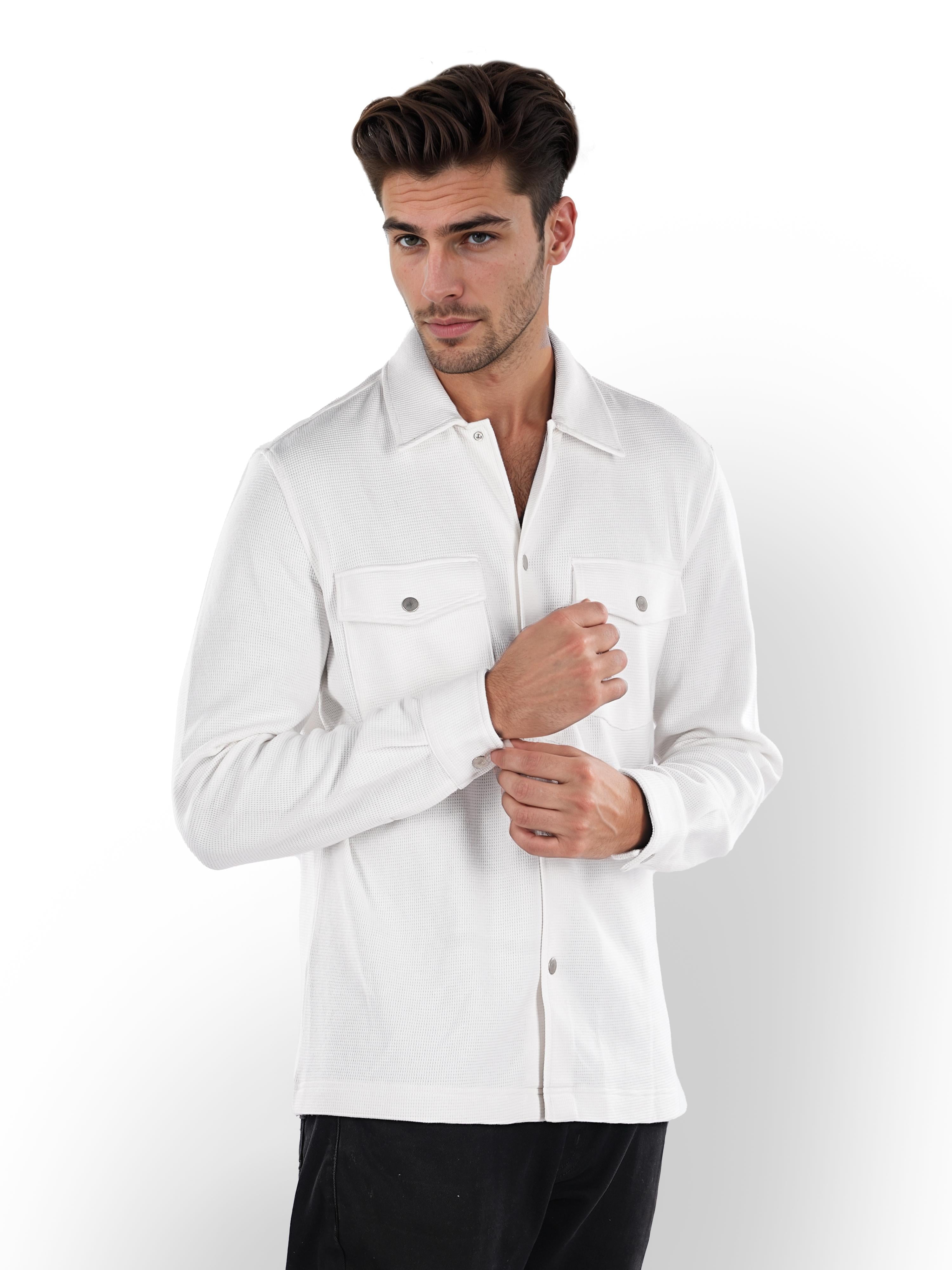 Celio* Printed Regular Fit Cotton White Shirt