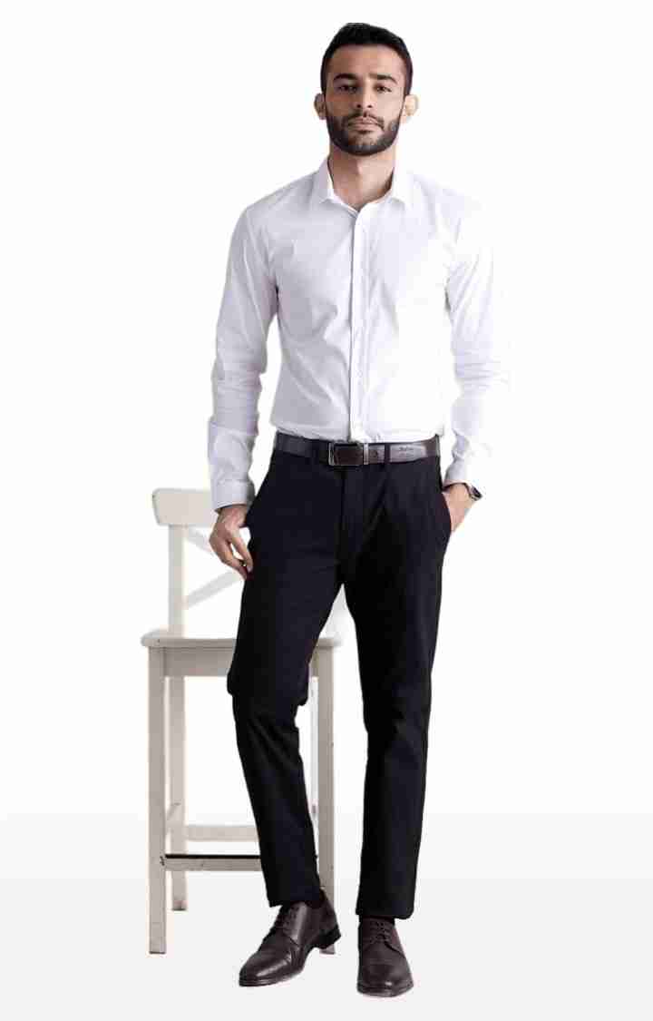 Celio* Cotton-Blend Regular Fit Black Trouser
