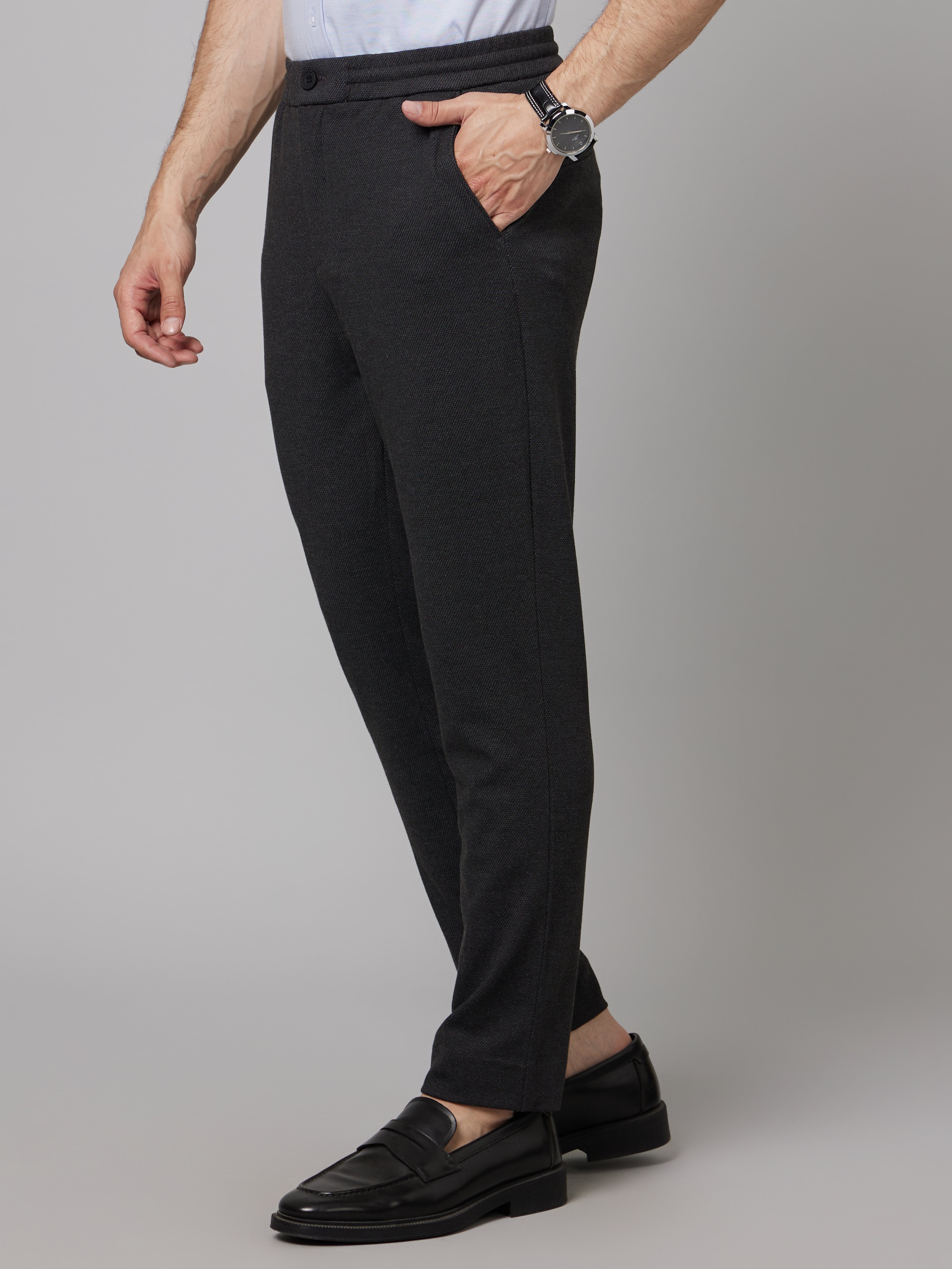 Celio* Cotton-Poly-Blend Regular Fit Black Trouser
