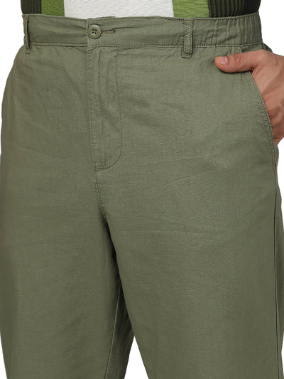 Celio* Linen Straight Fit Green Trouser