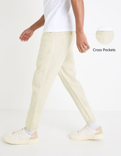 Celio* Cotton-Blend Regular Fit Beige Trouser