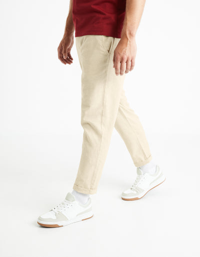 Celio* Linen-Blend Straight Fit Beige Trouser