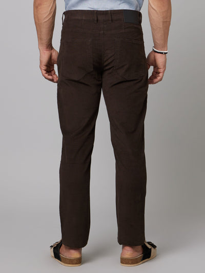 Celio Men Brown Solid Slim Fit Cotton-Linen-Blend Trousers