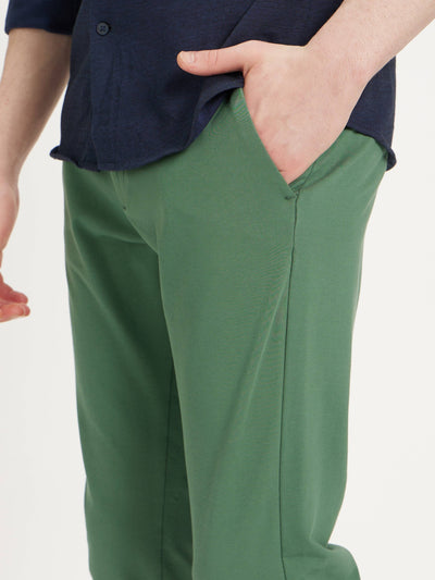 Celio Men Green Solid Slim Fit Cotton-Linen-Blend Trousers