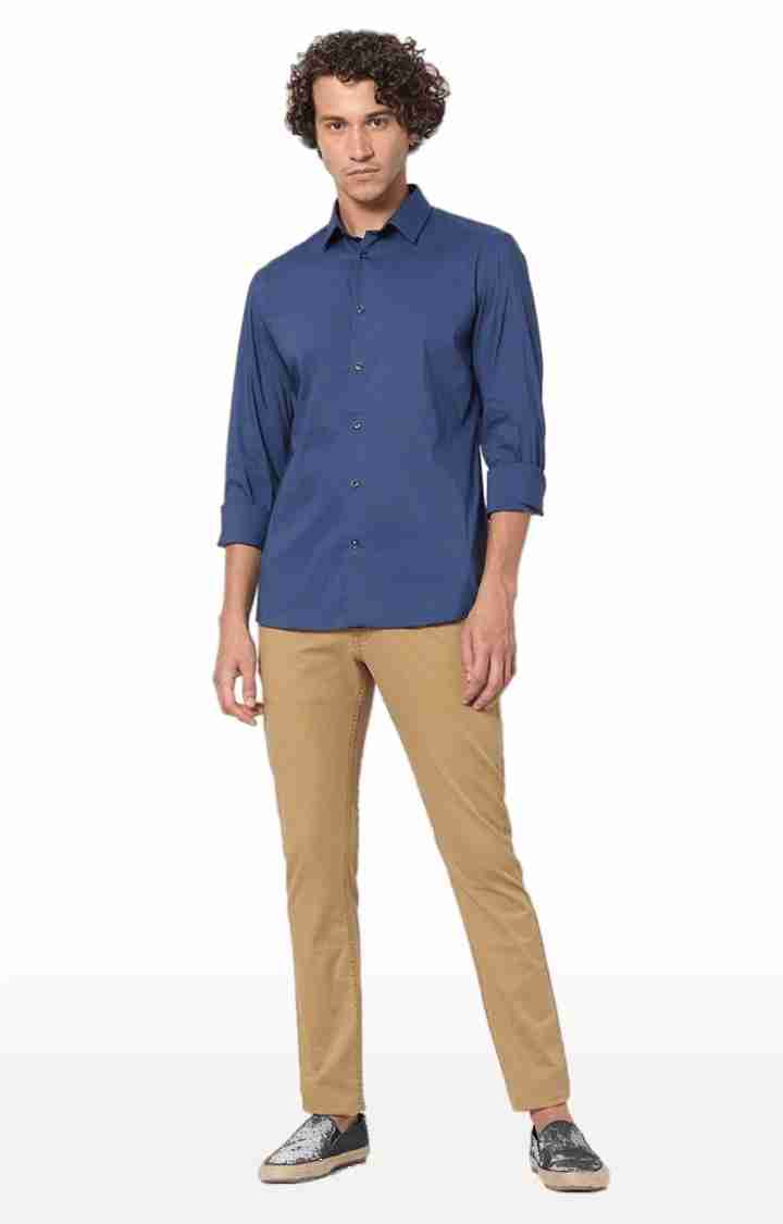 Celio* Men Brown Solid Regular Fit Linen Trousers