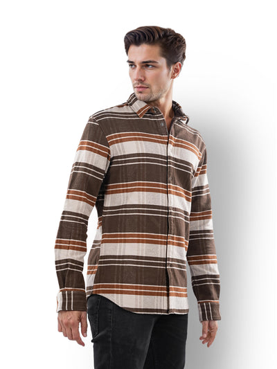 Celio* Striped Regular Fit Cotton Brown Shirts