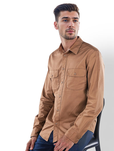 Celio* Solid Regular Fit Cotton Brown Shirt