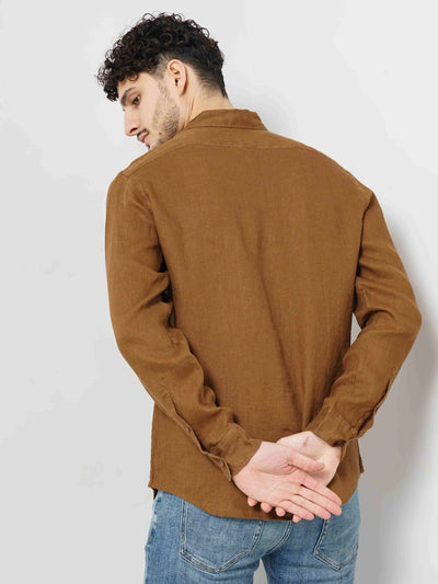 Celio* Men Brown Solid Regular Fit Cotton Shirt