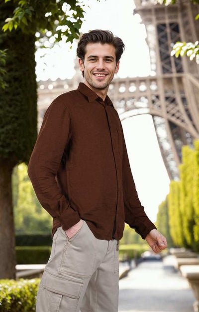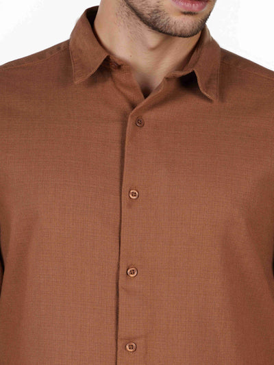 Celio Men Brown Solid Regular Fit Cotton Shirts