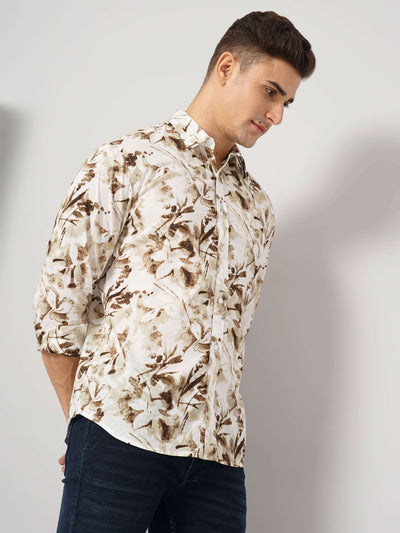 Celio Men Brown Printed Regular Fit Cotton Shirts