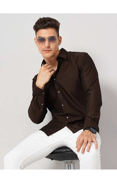 Celio Men Brown Solid Regular Fit Viscose Shirts