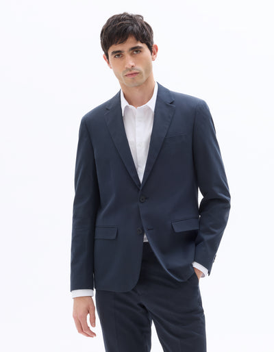 Celio Mens Navy Solid Slim Fit Cotton Blazer