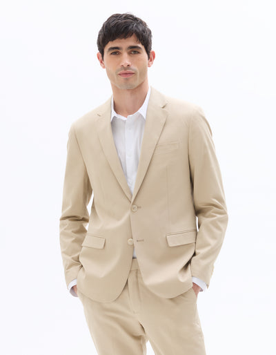 Celio Mens Beige Solid Slim Fit Cotton Blazer