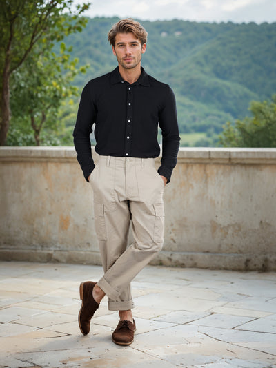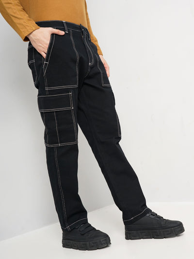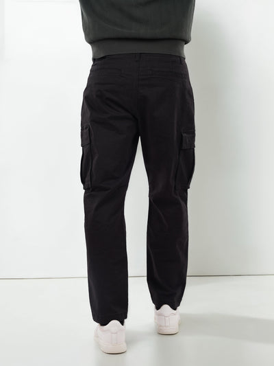 Celio* Cotton-Blend Straight Fit Black Cargo