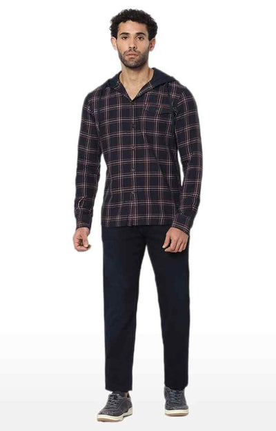 Celio Men Navy Blue Checked Regular Fit Viscose Shirts