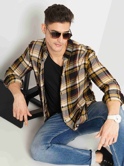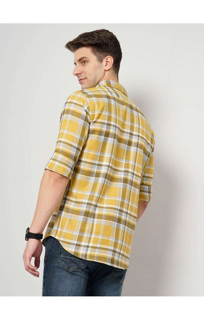 Celio Men Yellow Checked Regular Fit Cotton Shirts