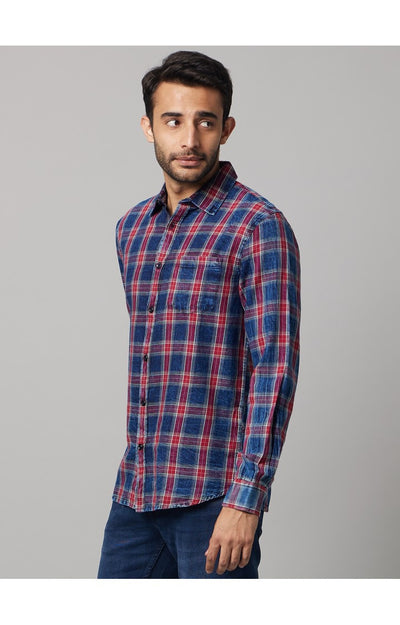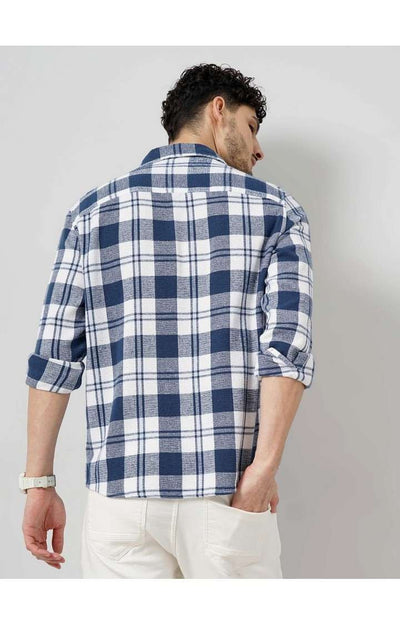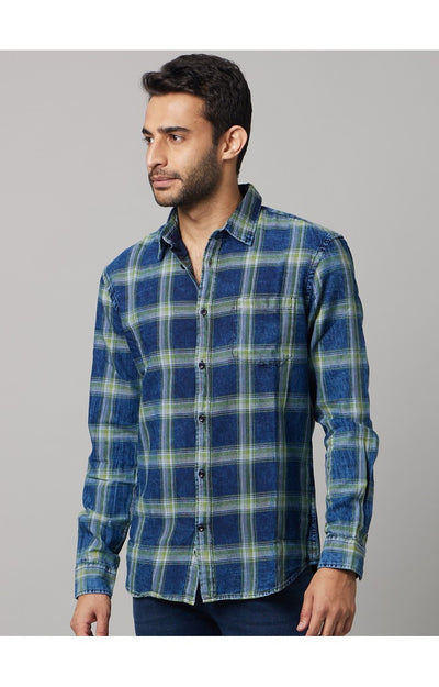 Celio Men Blue Checked Regular Fit Cotton Shirts