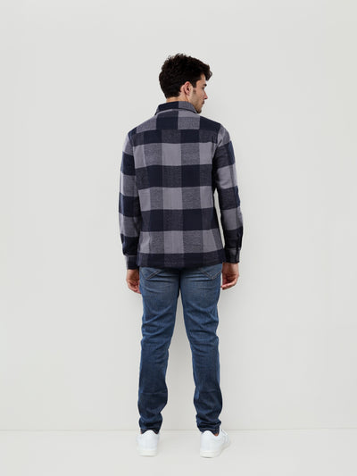 Celio* Men Grey Checked Regular Fit Cotton Shirts