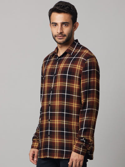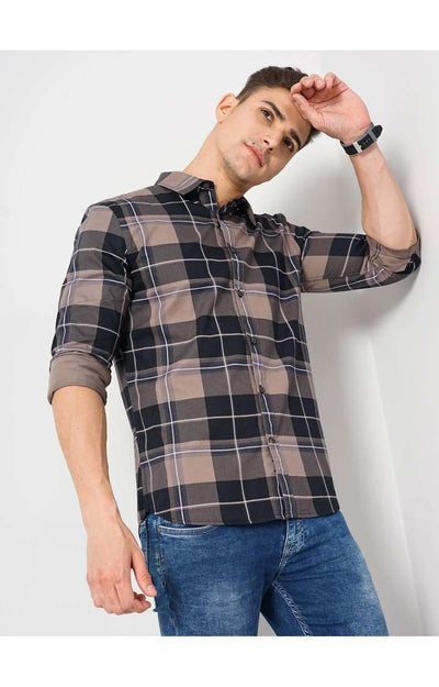 Celio Men Brown Checked Regular Fit Cotton Shirts