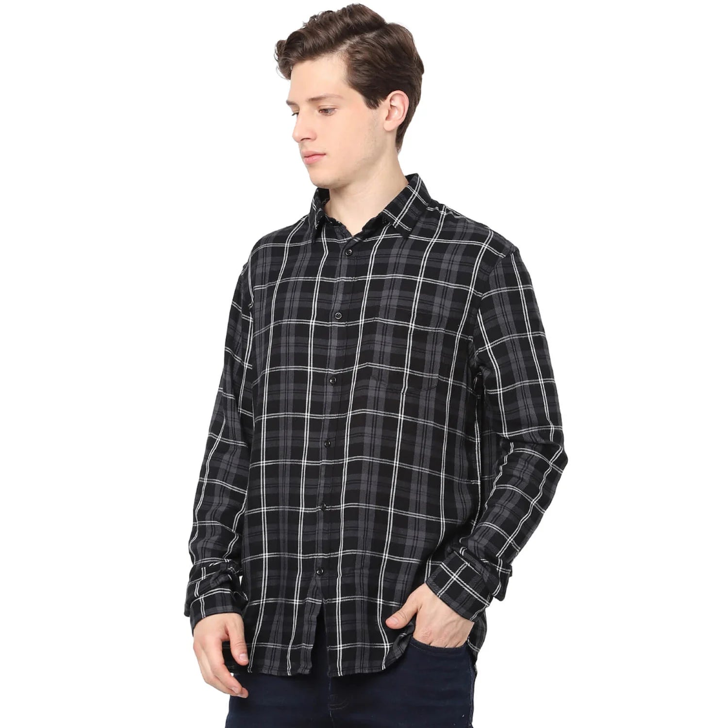 Celio* Checked Regular Fit Cotton Black Shirt