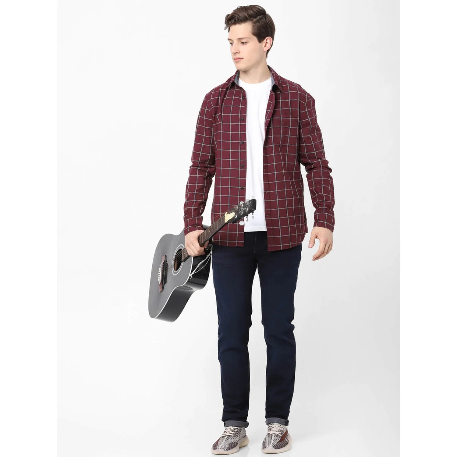 Celio* Checked Regular Fit Cotton Maroon Shirt