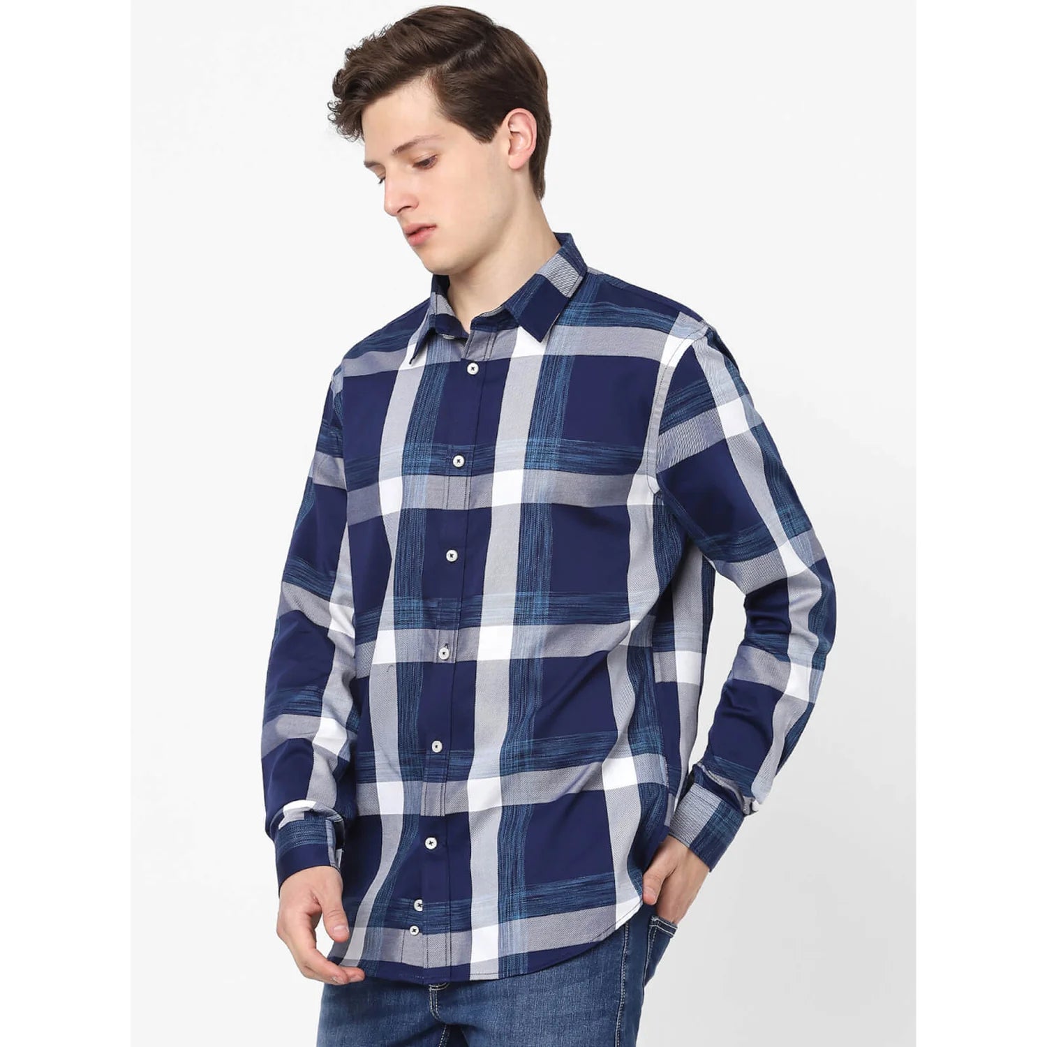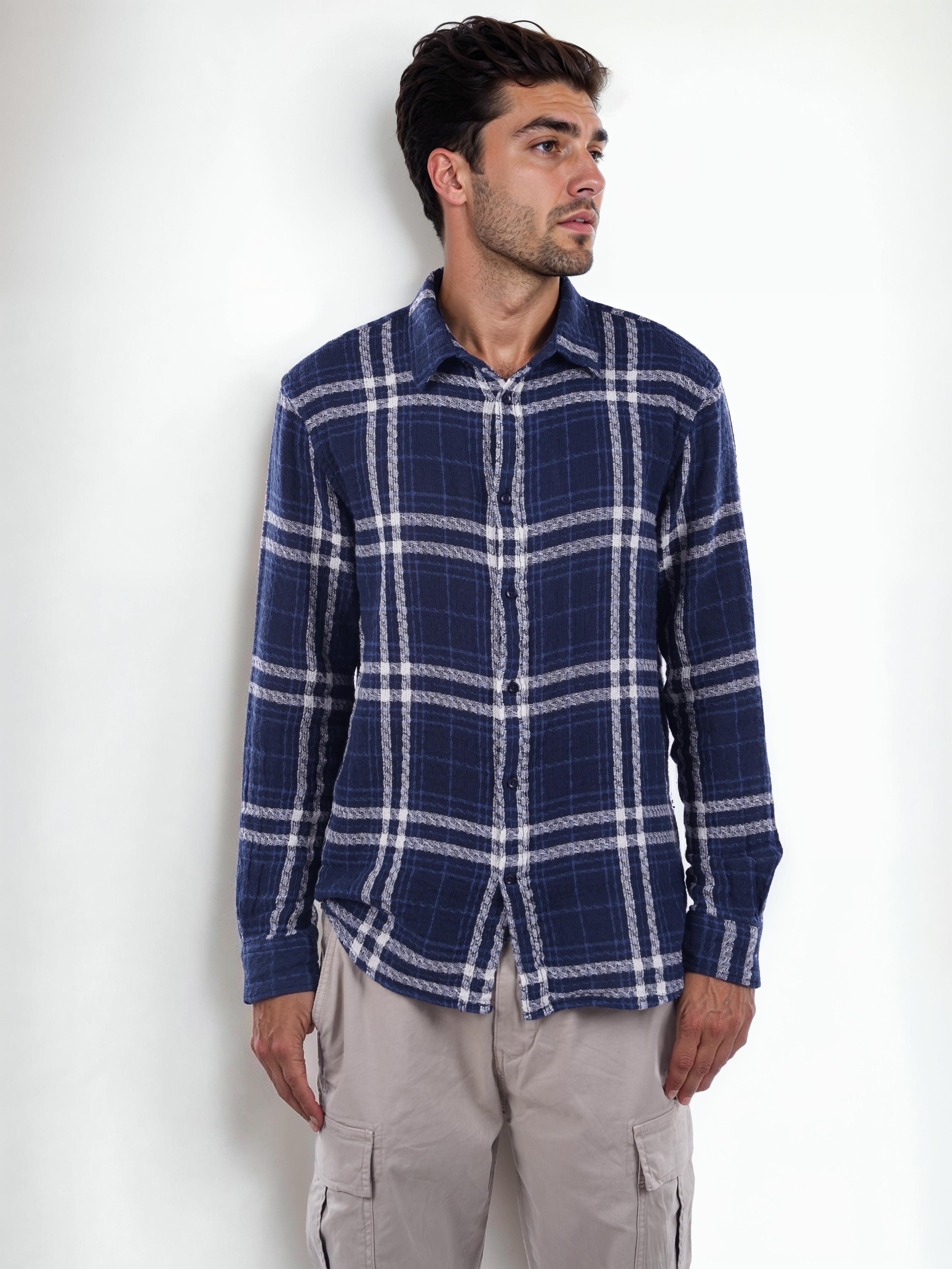 Celio* Checked Loose Fit Cotton Navy Blue Shirt