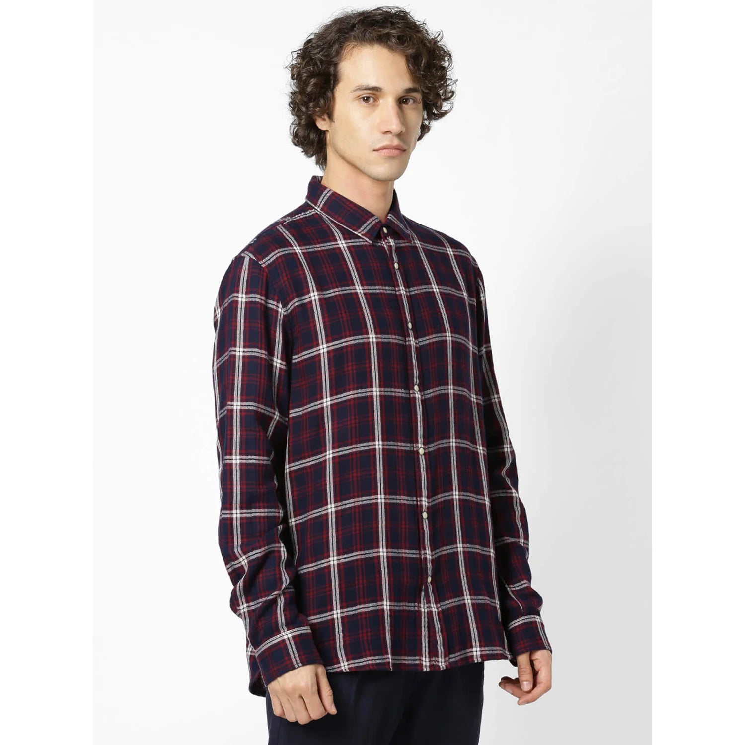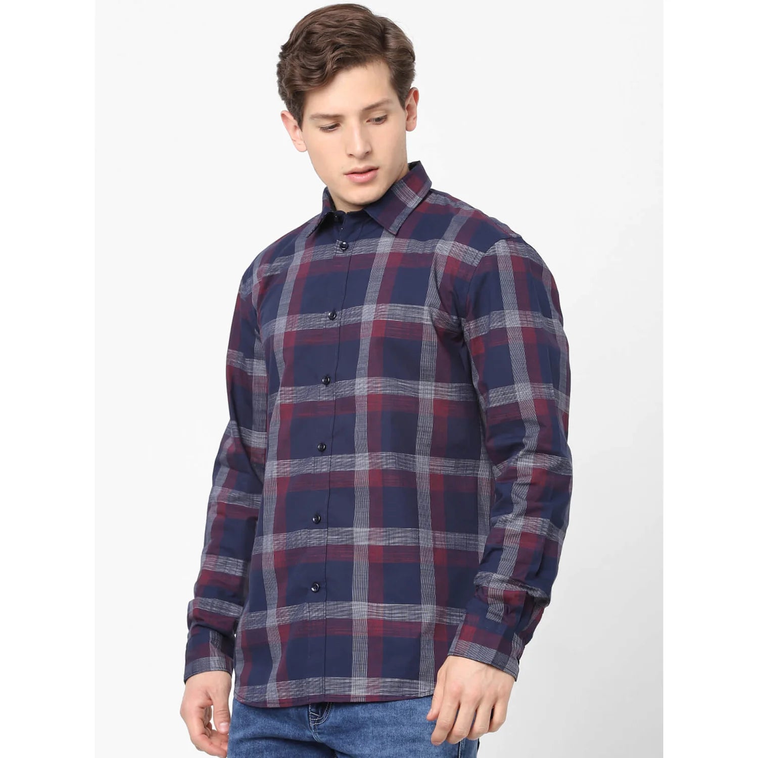 Celio* Men Burgundy Checked Regular Fit Cotton Shirts