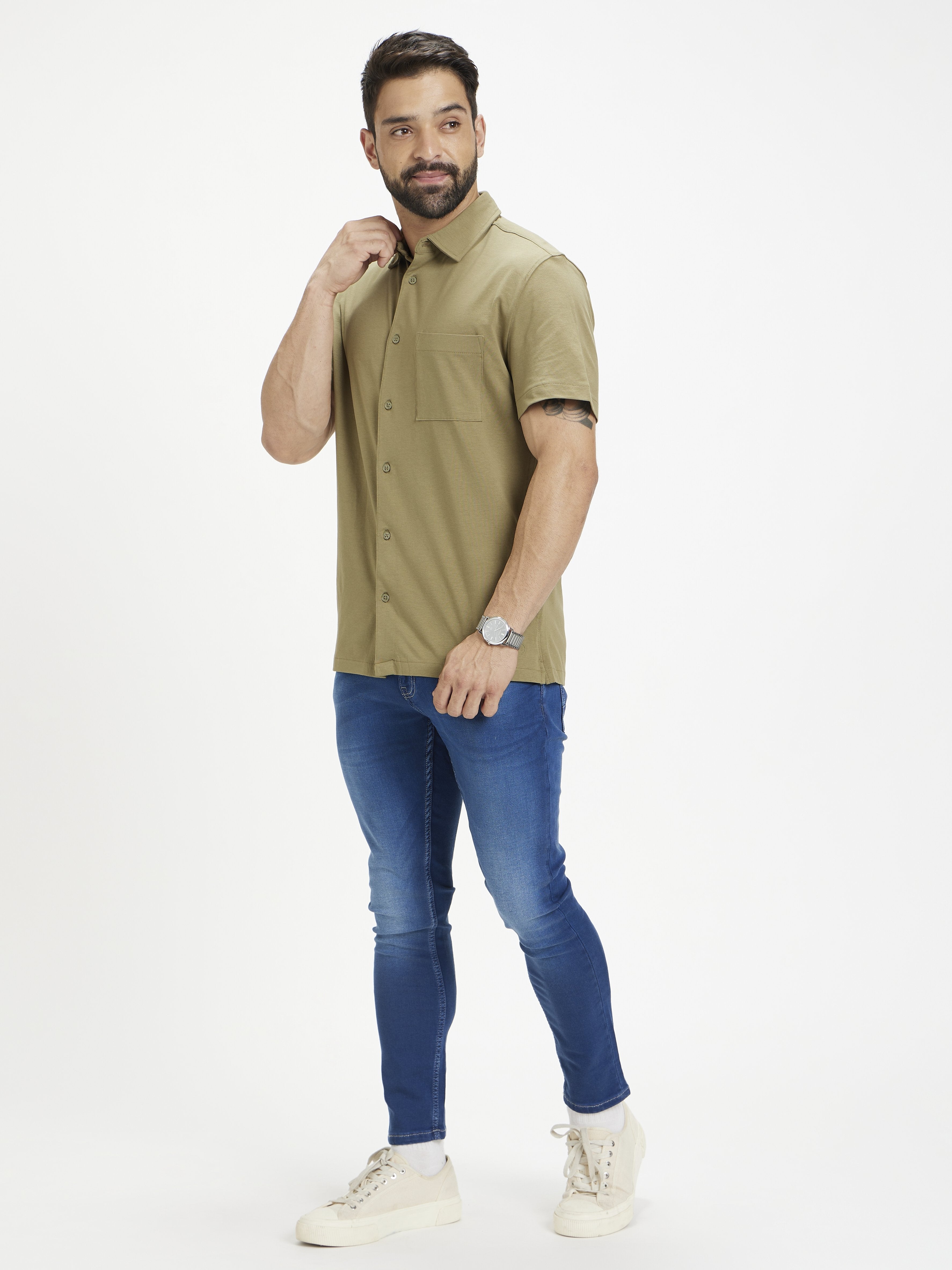 Celio* Men Green Solid Slim Fit Cotton Jeans