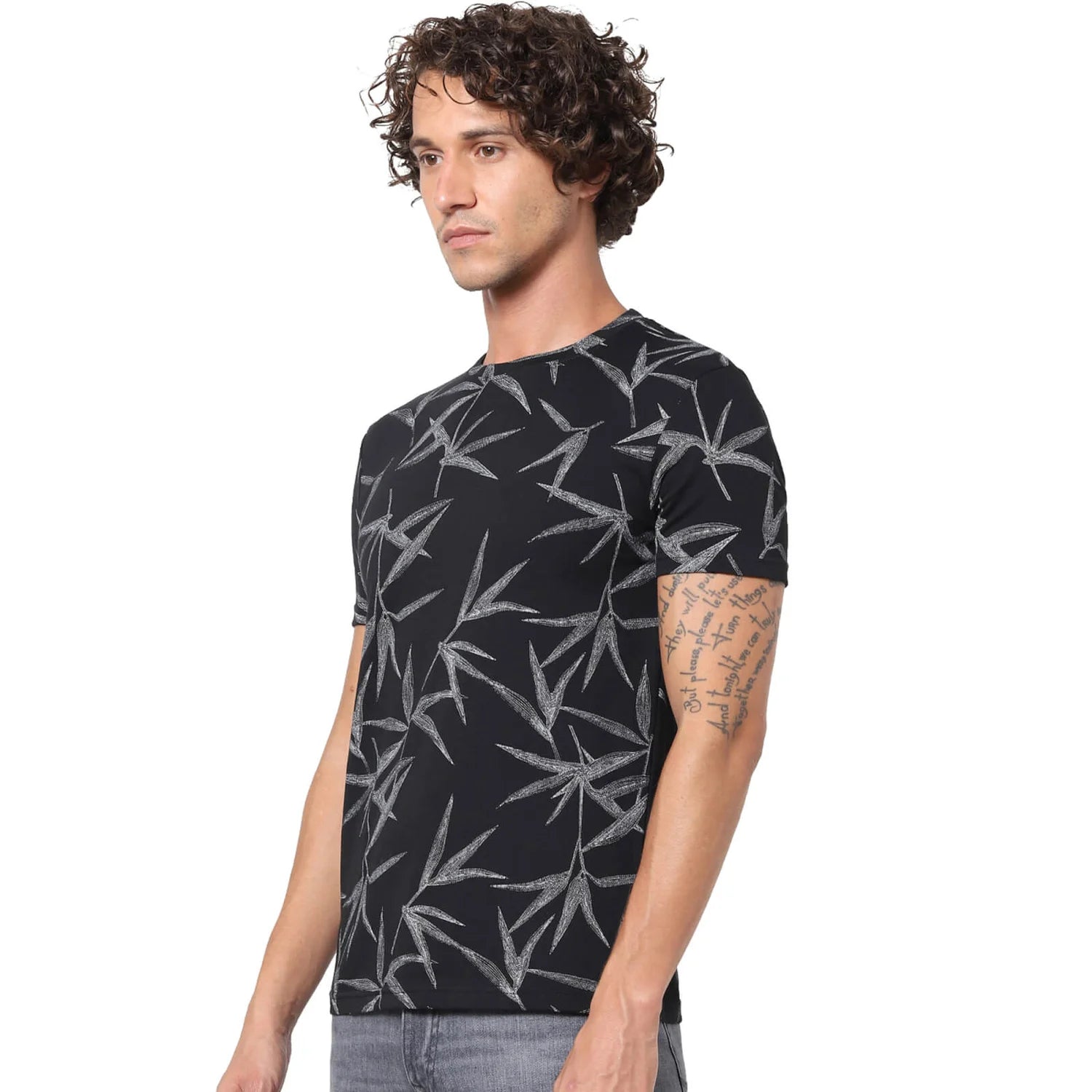 Celio* Floral Regular Fit Cotton Black T-Shirt