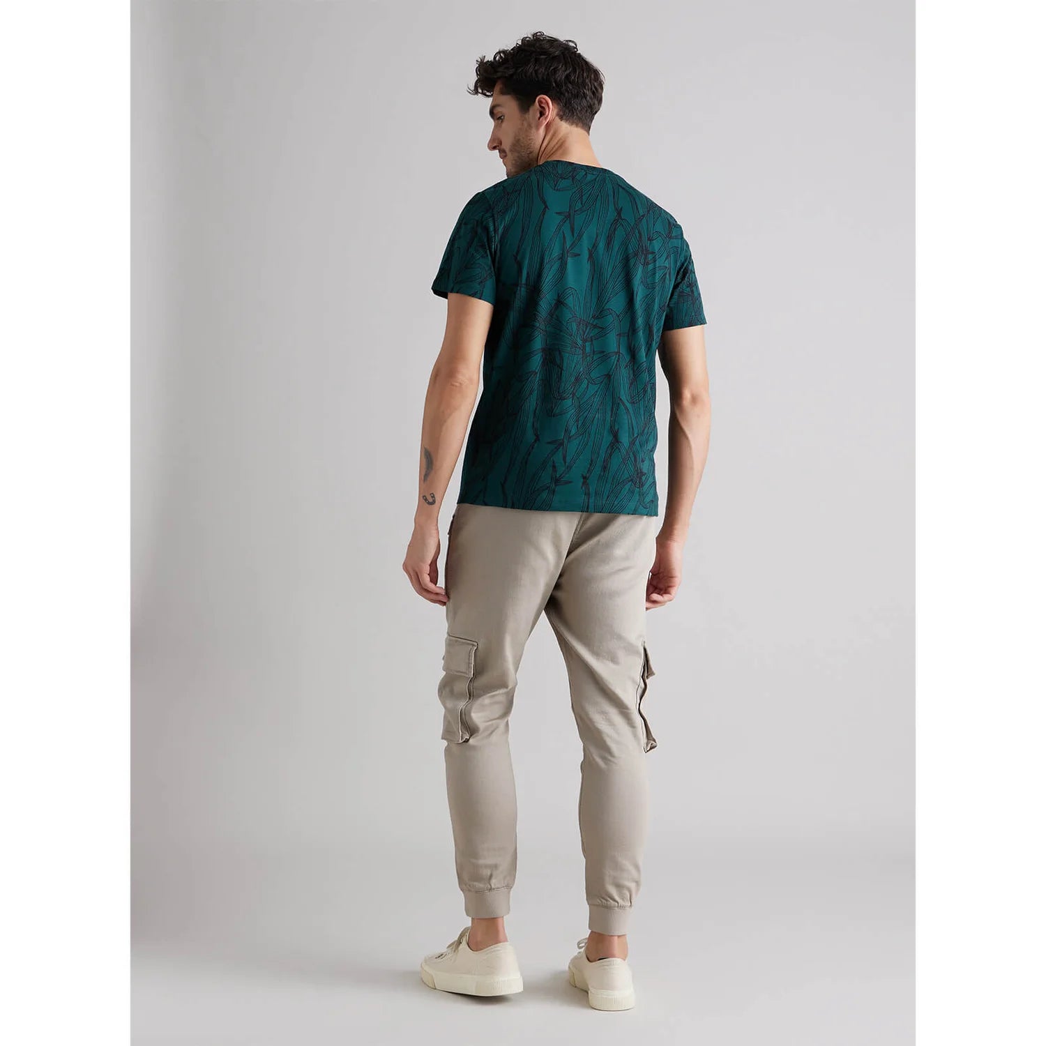 Celio* Printed Regular Fit Cotton Teal T-Shirt