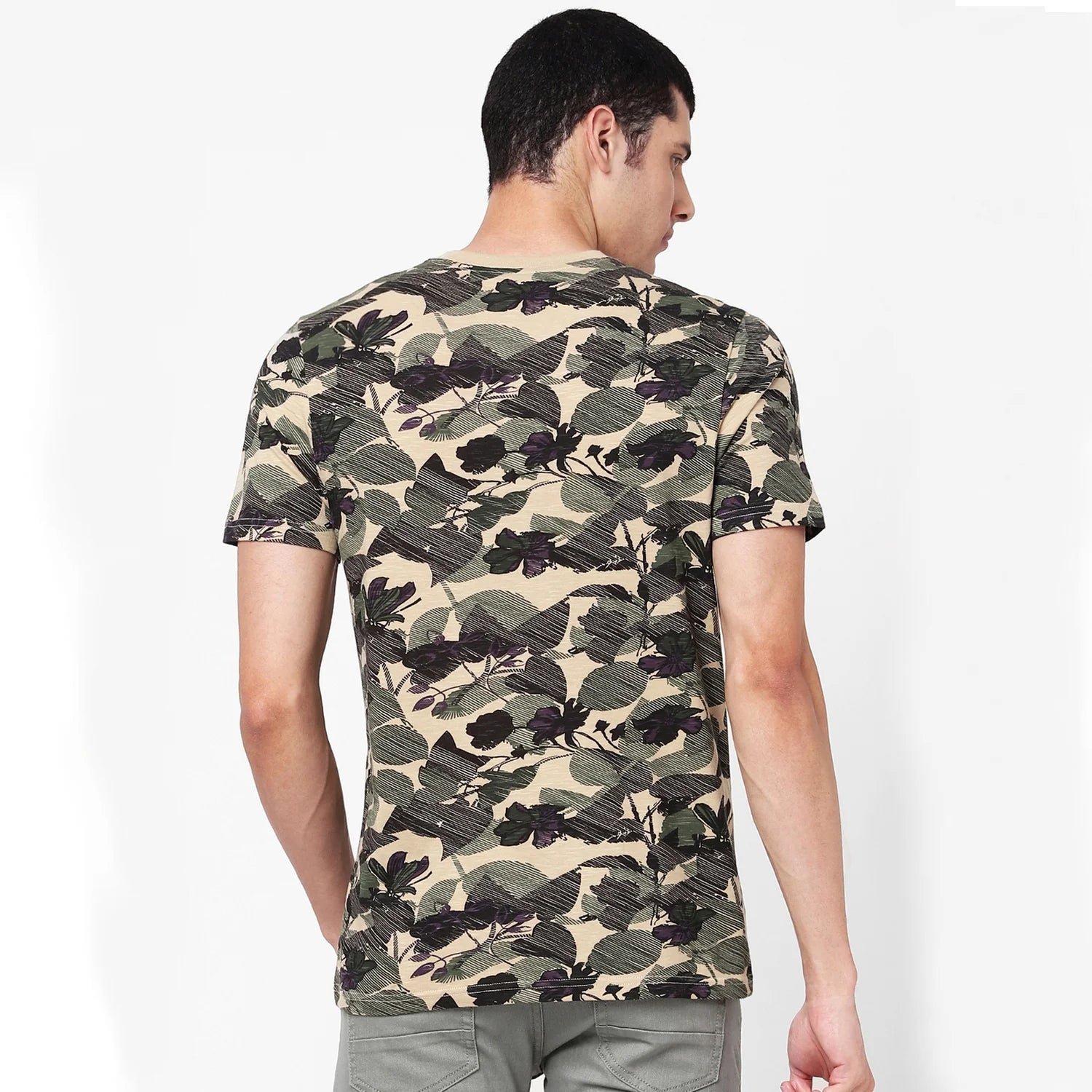 Celio* Printed Regular Fit Cotton Olive T-Shirt