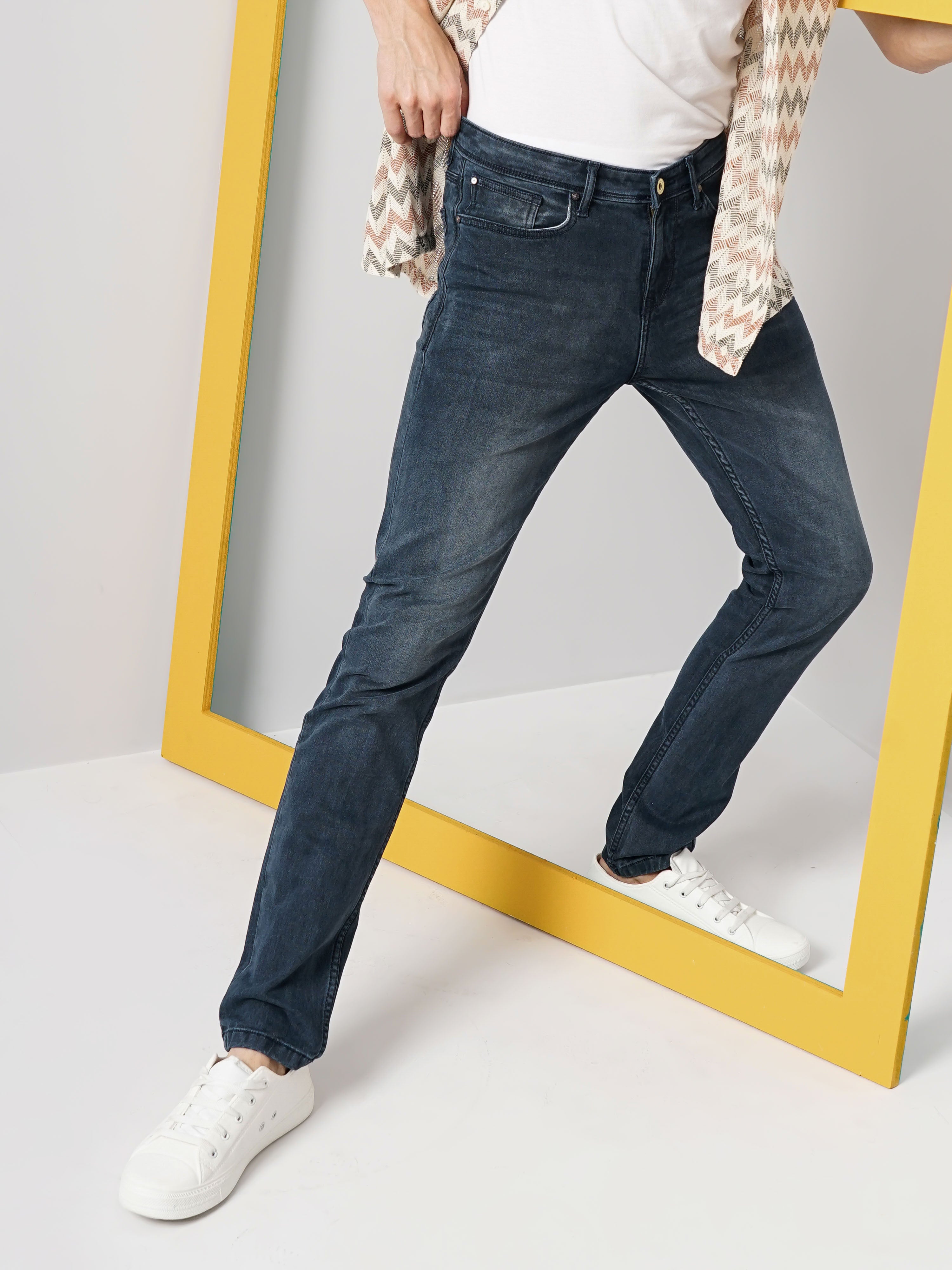 Celio* Modal-Blend Straight Slim Fit Navy Blue Jean