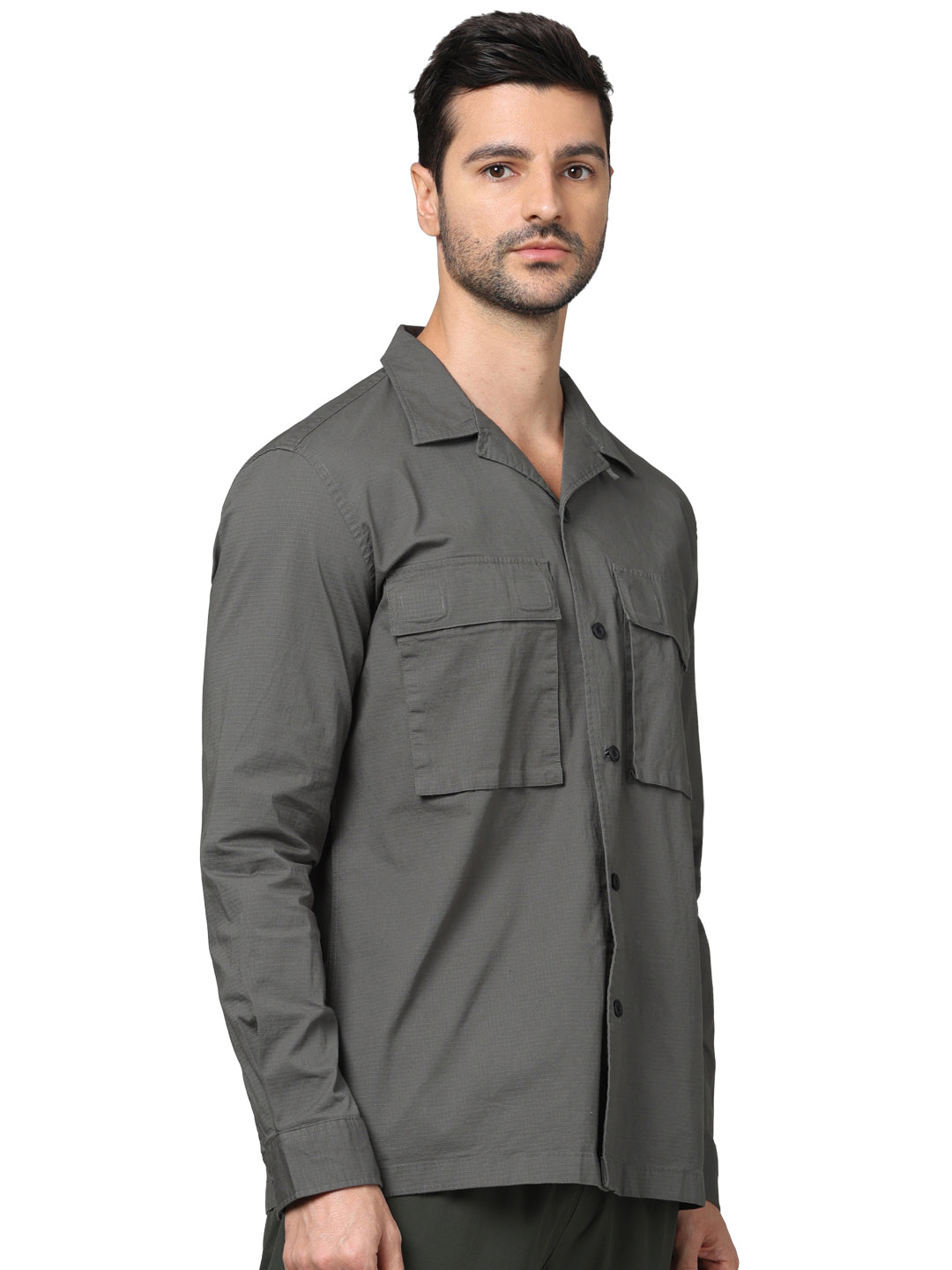 Celio* Solid Overshirt Linen-Blend Green Shirt