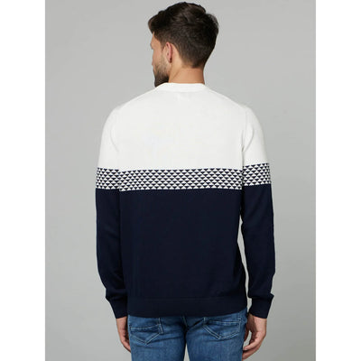 Celio* Colourblock Regular Fit Cotton Navy Blue Sweater