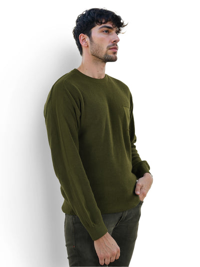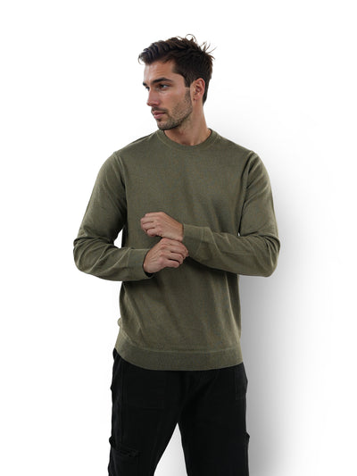 Celio* Solid Regular Fit Cotton Olive Sweater