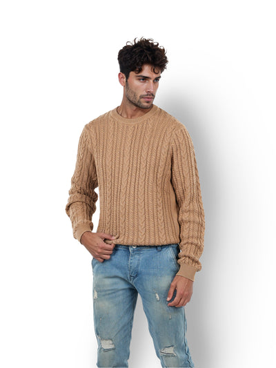 Celio* Solid Regular Fit Cotton Beige Sweater