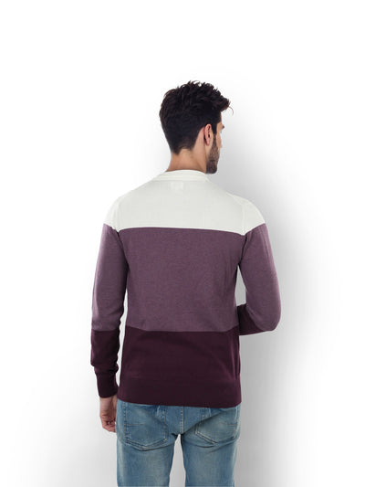 Celio* Colourblock Regular Fit Cotton Purple Sweater
