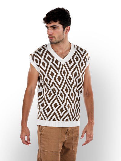 Celio* Printed Regular Fit Cotton Off White Sweater