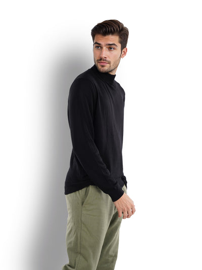 Celio* Solid Regular Fit Viscose Black Sweater