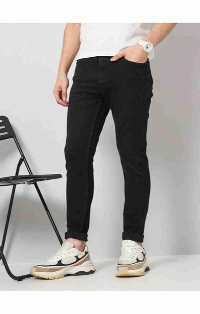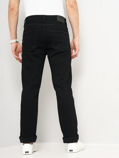 Celio* Cotton-Lycra-Blend Straight Fit Black Jean