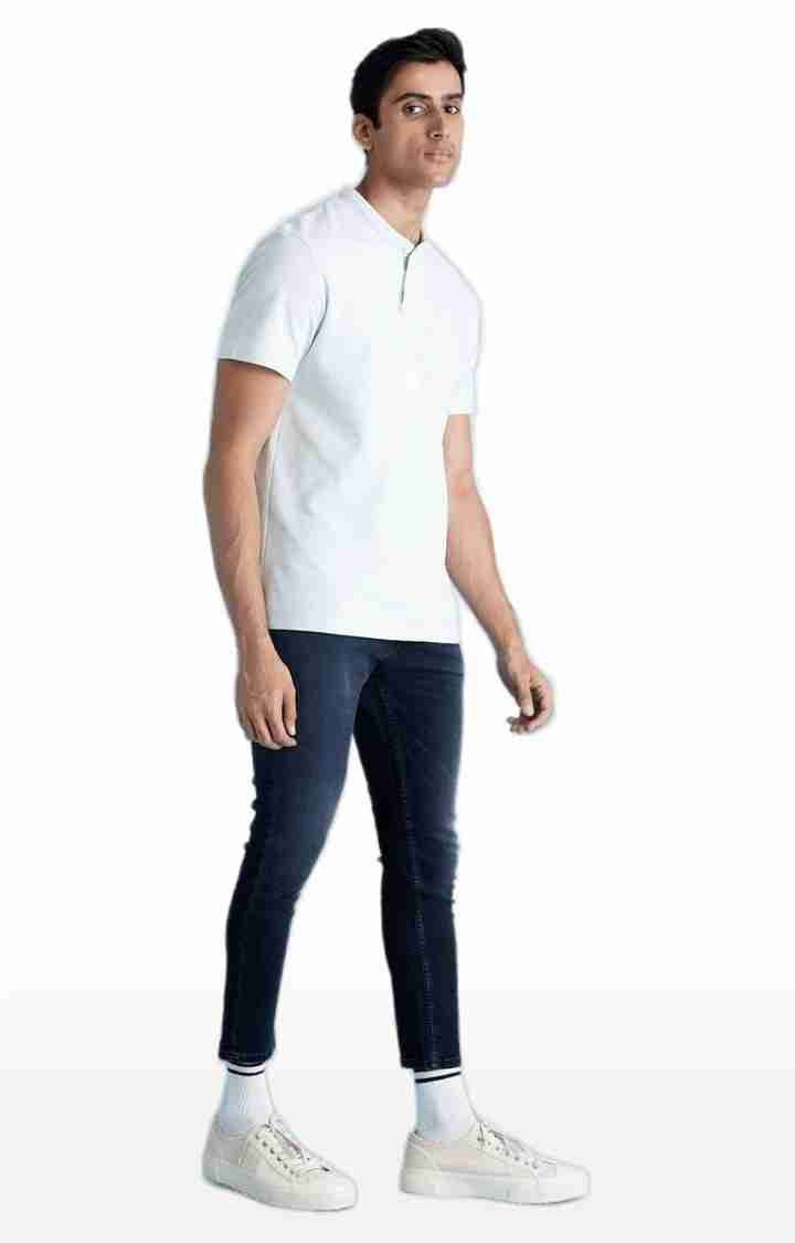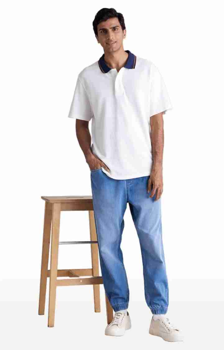 Celio Blue_Lock Regular Fit Cotton White T-Shirt