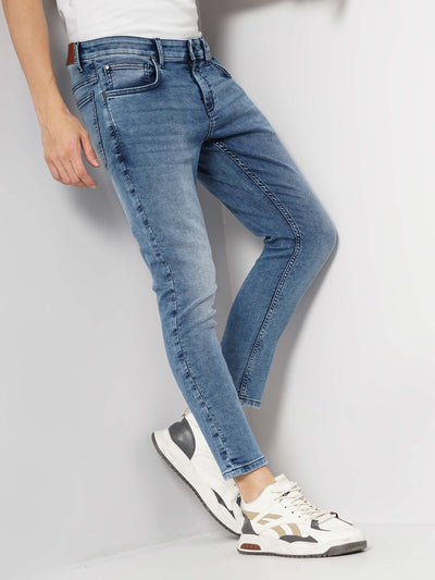 Celio* Men Blue Solid Skinny Fit Cotton-Blend Jeans