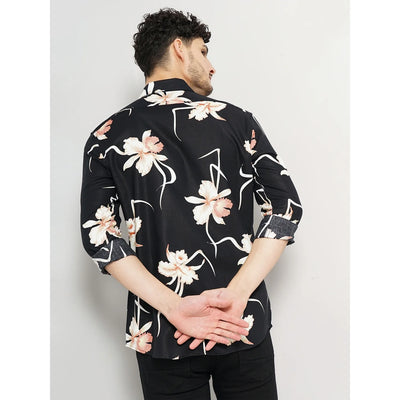 Celio* Floral Regular Fit Cotton-Blend Black Shirt