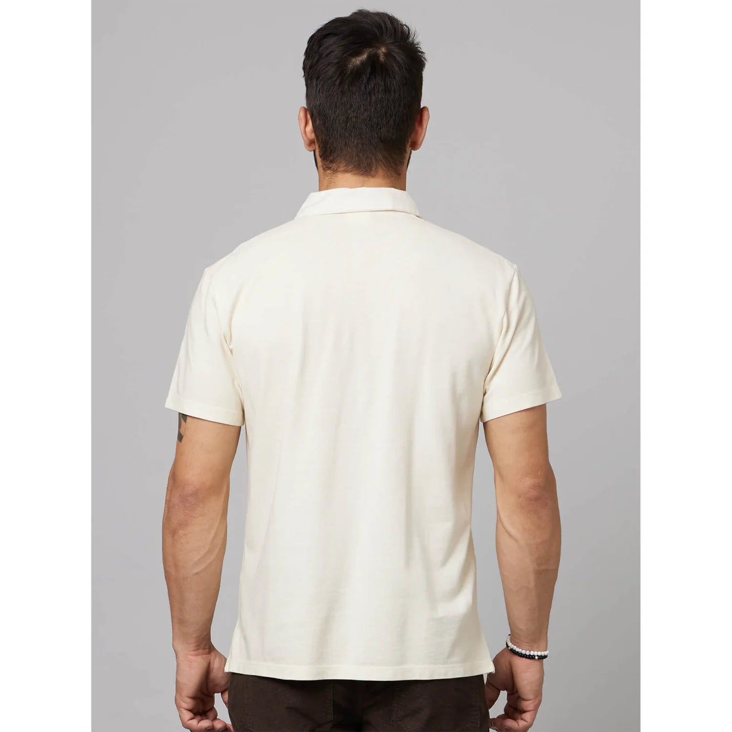 Celio* Solid Regular Fit Cotton Cream T-Shirt