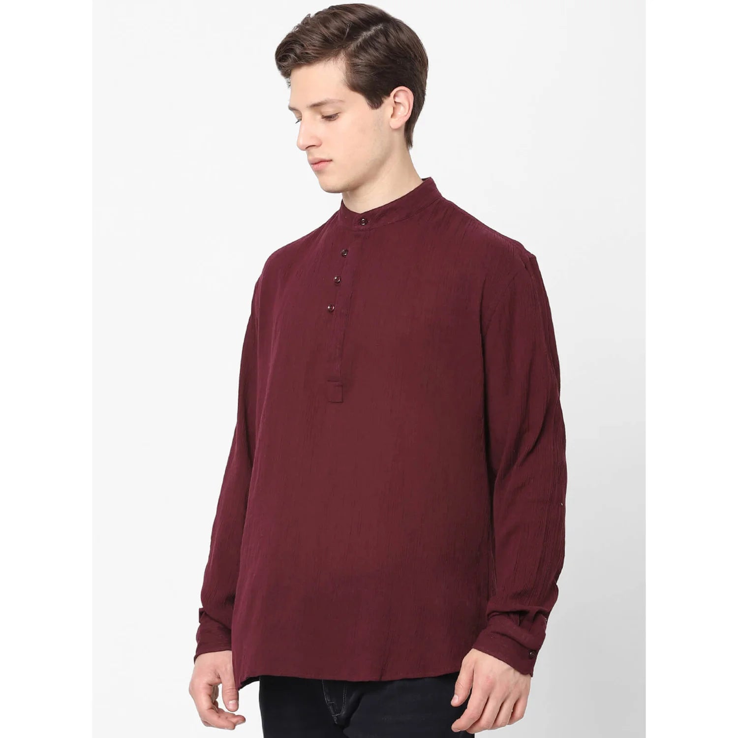 Celio* Slub Regular Fit Cotton Burgundy Shirt