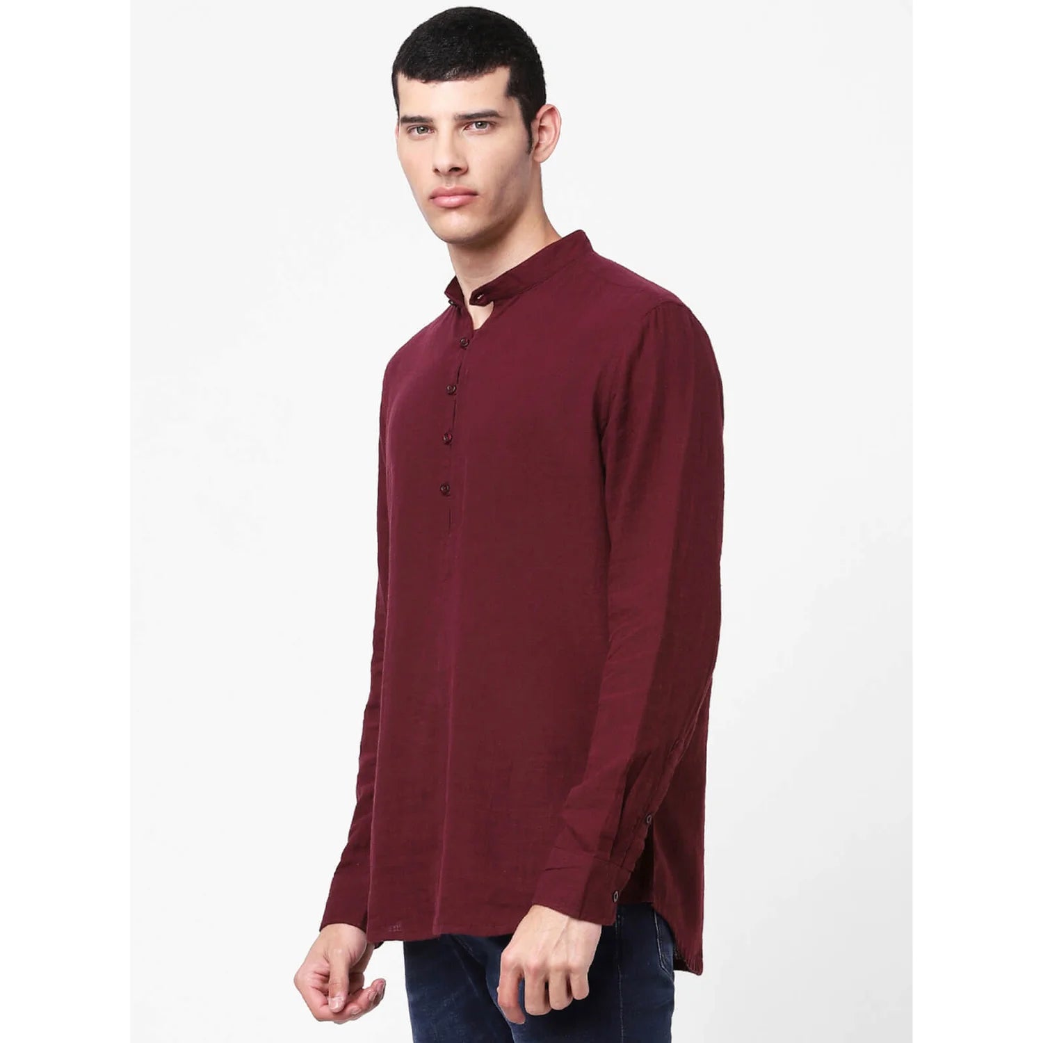 Celio* Solid Regular Fit Cotton Burgundy Shirt